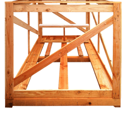 Members extending across the crate or box underneath the top which serve to support and transfer vertical stacking loads to the side panels. Joist also serve to prevent crushing or buckling of top panels when slings or grab hooks are to lift the box.