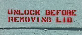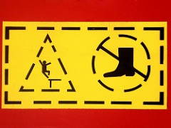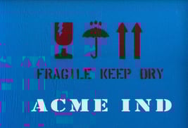 Red and white stenciled letters |