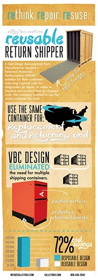Valley Box designed a standardized reusable shipping crate that allowed for the expired units to fit in the same shipping container that the replacement units arrived in. This eliminated the need for multiple shipping containers.