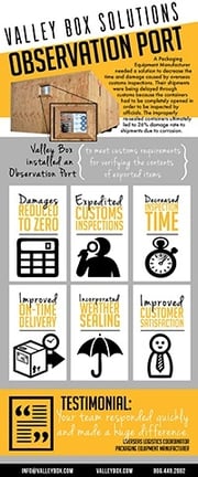Solution: By installing an observation/inspection port on the exterior wood container, and a viewing port in the barrier bag, we allowed Customs to perform their tasks without breaching the seal or the container.