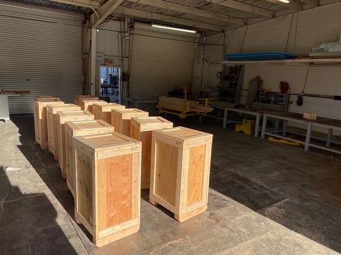 Valley Box has created solutions by simply incorporating a wood base into the design. Shipping crates are then capable of supporting heavy loads while weighing less overall. Although triple wall, being a paperboard material, doesn't do well in moisture, Luke's application was the perfect scenario to give this solution a shot.