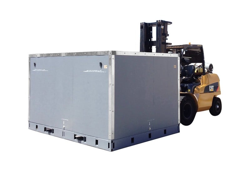 - Chamfered skids so the box can be pushed around with the forklift and maneuvered easily
