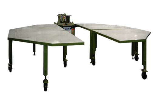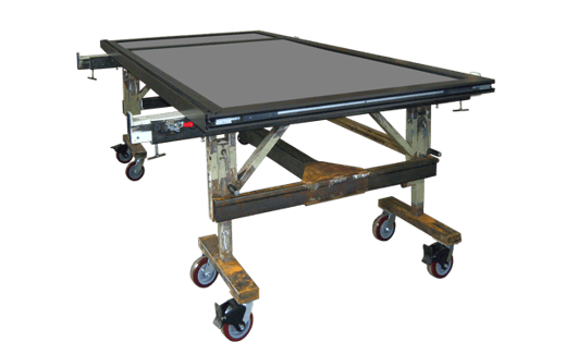 Work positioning tables provide an efficient way for a stand alone operator to transport, lift and position heavy loads without assistance.